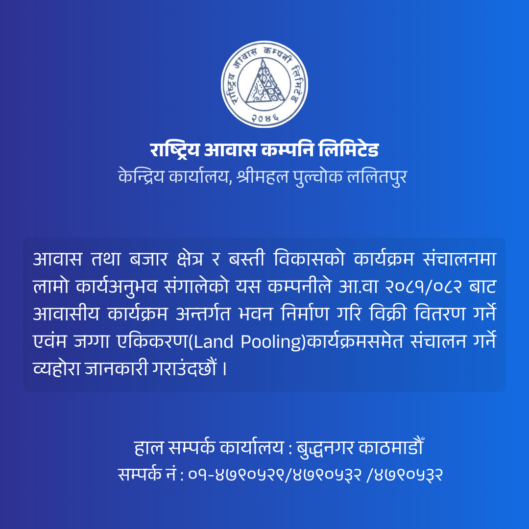 काठमाडौं। कम्पनीले सार्वजनिक निष्कासनका लागि छुट्याएको एघार लाख पचपन्न हजार नाै सयसाठी कित्ताको दश प्रतिशत...