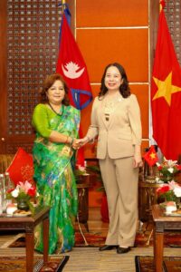 काठमाडौं। समाजवादी गणतन्त्र भियतनामका उपराष्ट्रपति भो थि आन सुआनसँग परराष्ट्रमन्त्री डा. आरजु राणा देउवाले आज यहाँ शिष्टाचार भेटवार्ता गर्नुभएको छ।