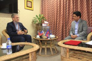 काठ्माण्डौँ। उद्योग, वाणिज्य तथा आपूर्ति मन्त्री दामोदर भण्डारीसँग नेपालका लागि संयुक्त राज्य अमेरिकाका राजदूत डिन आर थोम्पसनले शिष्टाचार भेटघाट गरेका छन्।