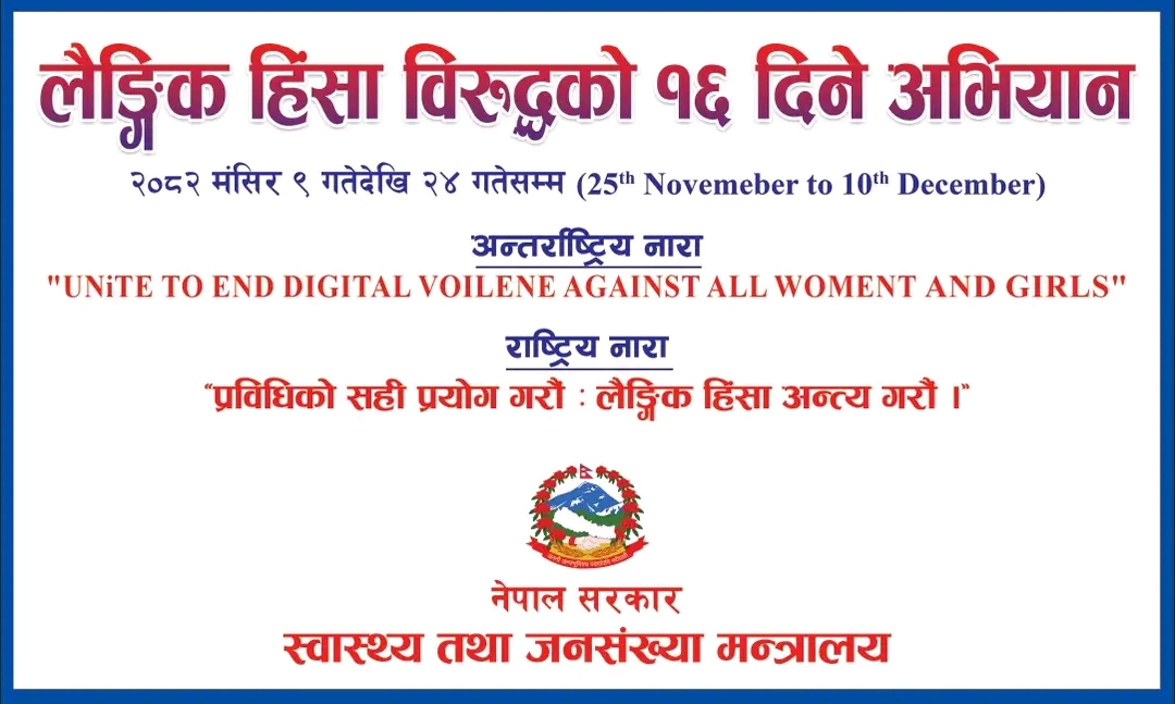 १६ दिने अभियान सुरु, “प्रविधिको सही प्रयोग गरौं: लैङ्गिक हिंसा अन्त्य गरौँ”.