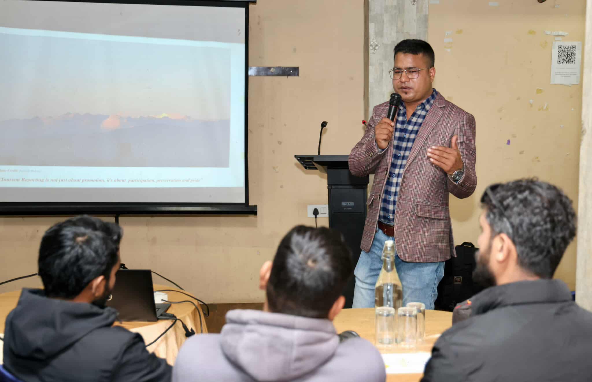 तालिममा नेपाल पर्यटन बोर्डका सञ्चार परामर्शदाता दिलिप प्रकाश कार्कीले पर्यटन पत्रकारिताको आधार, बोर्डको प्रवर्द्धन रणनीति, गन्तव्य ब्रान्डिङ र दृश्य कथाको प्रभावकारिताबारे प्रशिक्षण दिए।
