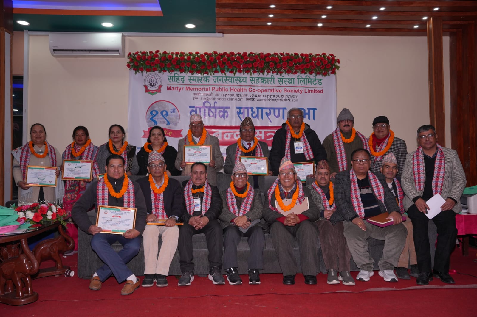 काठमाडौँ । शहिद स्मारक जनस्वास्थ्य सहकारी संस्था लिमिटेडको १९औँ वार्षिक साधारण सभा तथा अधिवेशन सम्पन्न भएको छ। माननीय सोमनाथ अधिकारी ‘प्यासी’को अध्यक्षतामा सम्पन्न सभाले अध्यक्षको प्रतिवेदन, आर्थिक वर्ष २०८१/०८२ को आर्थिक प्रतिवेदनसहित विभिन्न प्रतिवेदन पारित गरेको छ।