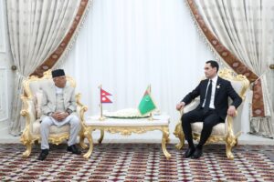 तुर्कमेनिस्तान । प्रधानमन्त्री केपी शर्मा ओलीले भूपरिवेष्टित विकासशील राष्ट्रहरू (एलएलडिसी) को तेस्रो संयुक्त राष्ट्रसङ्घीय सम्मेलनका क्रममा ‘जलवायु परिवर्तनका कारण सिर्जित प्रकोपमा भूपरिवेष्ठित विकासशील देशहरुले अवलम्बन गर्नुपर्ने अनुकूलन क्षमताको अभिवृद्धि र लचिलोपन’ विषयका छलफल सत्रलाई सम्बोधन गर्नुभएको छ ।