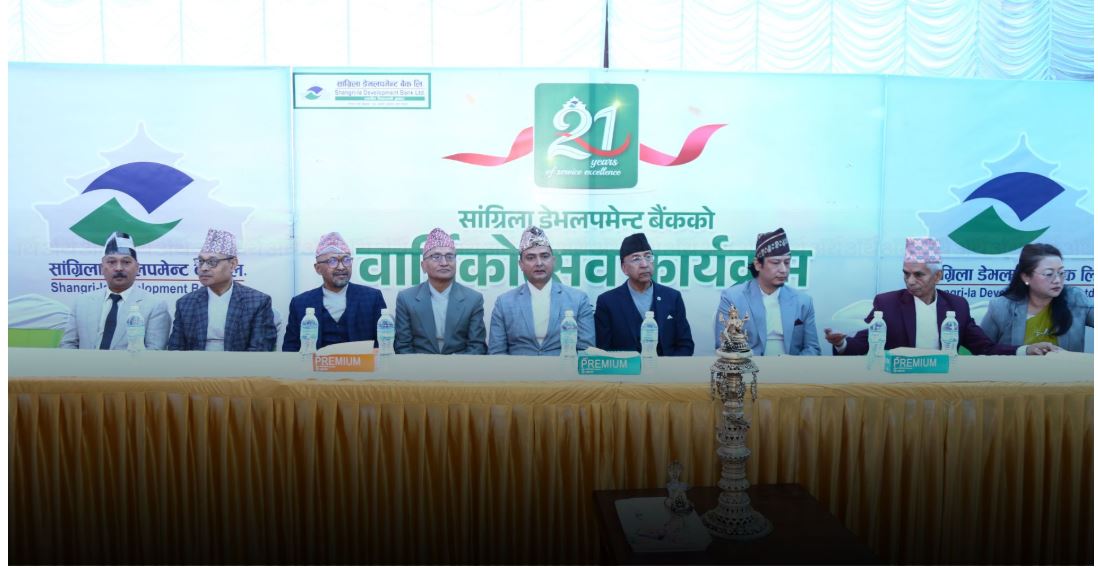काठमाडौं। सांग्रिला डेभलपमेन्ट बैंकले आफ्नो २१ औं वार्षिकोत्सव सम्पन्न गरेको छ। वार्षिकोत्सवको अवसरमा विहीबार बैंकको केन्द्रिय कार्यालय बालुवाटारमा एक कार्यक्रम आयोजना गरिएको थियो। कार्यक्रममा बैंक सञ्चालक समितिका अध्यक्ष उज्वल सत्यालले बैंकको यो गौरवपूर्ण यात्रामा साथ दिने सम्पूर्ण सरोकारवाला ब्यक्ति र...