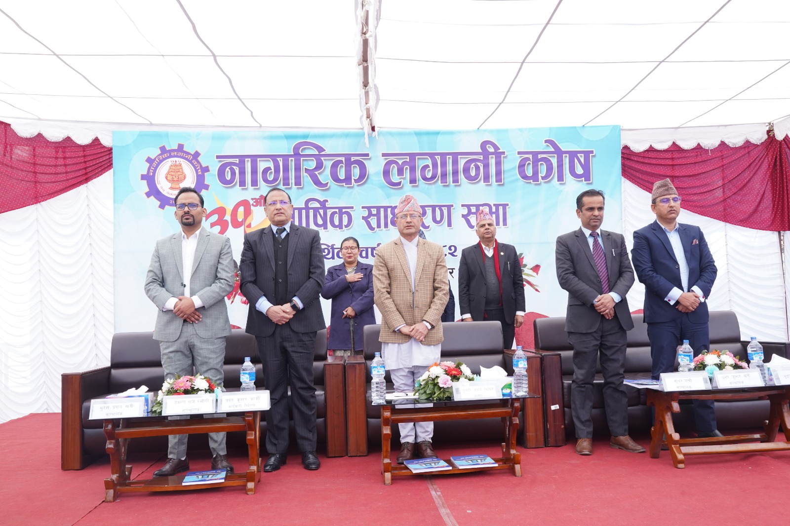 काठमाडौं, नागरिक लगानी कोषको ३१ औं वार्षिक साधारणसभा कोष सञ्चालक समितिका अध्यक्ष तुलसीप्रसाद घिमिरेको अध्यक्षतामा सम्पन्न भएको छ। सभाले आर्थिक वर्ष २०८१/८२ को आम्दानी बाँडफाँट हिसाब विवरणमा छुट्याइएको प्रस्तावित पाँच प्रतिशत बोनस सेयर र ८ प्रतिशत नगद लाभांशको प्रस्ताव पारित...