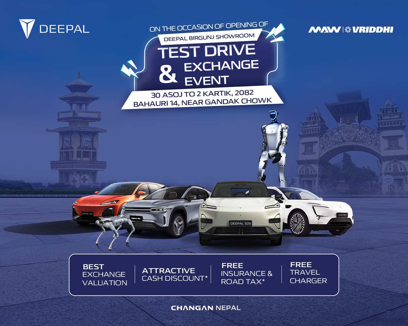 वीरगञ्ज, वीरगञ्जमा दिपलको नयाँ स्टेट अफ आर्ट सोरुम शुभारम्भ हुने अवसरमा एमएडब्लु वृद्धिले यहाँ आगामी ३० असोजदेखि चारदिने टेस्ट ड्राइभ र एक्सचेन्जको आयोजना गर्ने भएको जहाँ ग्राहकले दिपल र अवतारका लक्जरियस इभीको अनुभव गर्नुका साथै सट्टापट्टा गर्न सक्नेछन् । यस...