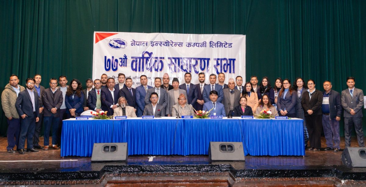 काठमाडौं। नेपाल इन्स्योरेन्स कम्पनी लिमिटेडको ७७औं वार्षिक साधारणसभा सम्पन्न भएको छ। कम्पनीका सञ्चालक समितिका अध्यक्ष चन्द्रसिंह साउदको अध्यक्षतामा पुष २९ गते मंगलबारका दिन त्रिभुवन आर्मी अफिसर्स क्लब, भद्रकाली, काठमाडौंमा सो सभा सम्पन्न भएको हो । सभाले आर्थिक वर्ष २०८१/०८२ को...
