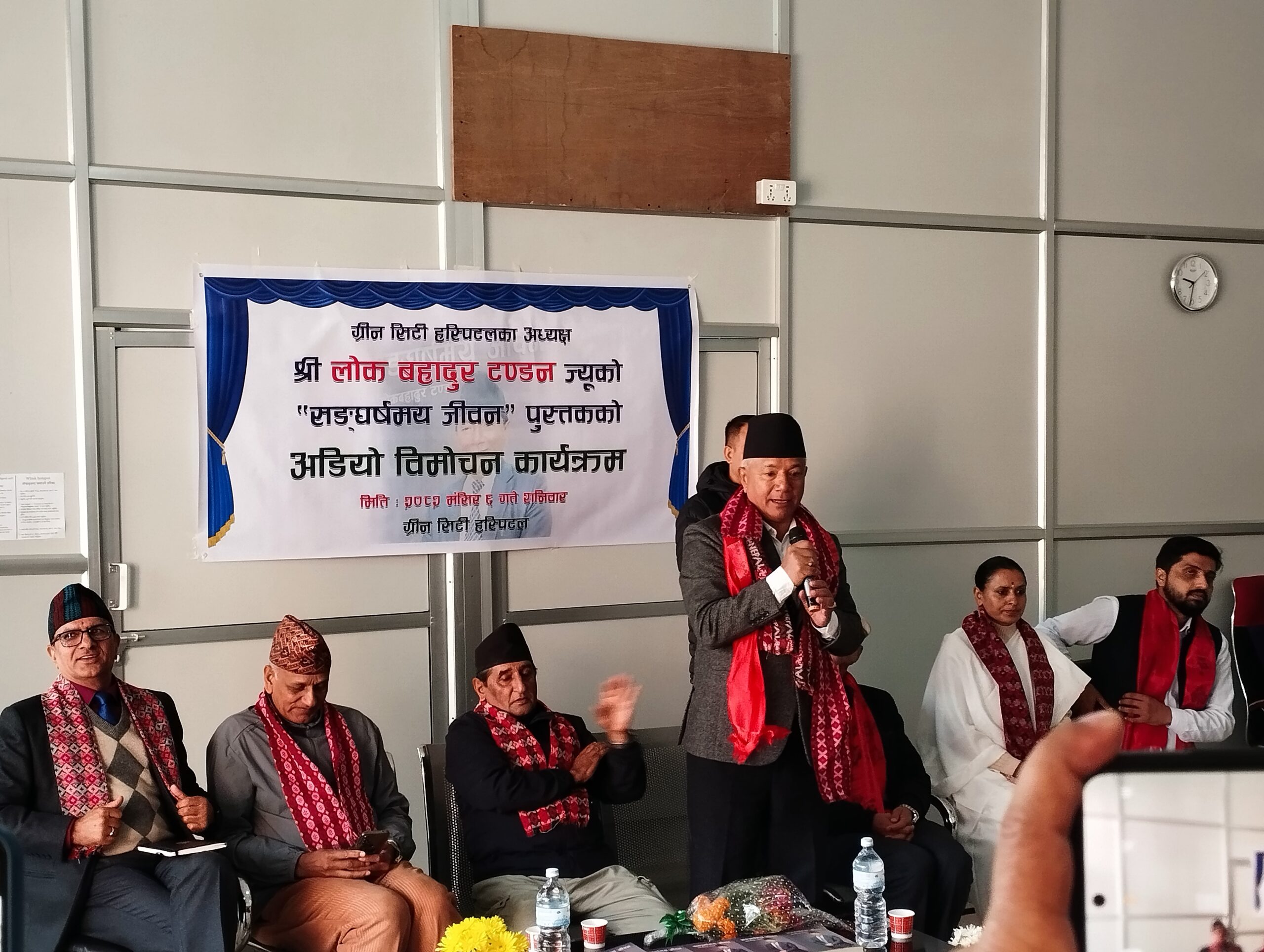 ग्रीन सिटी अस्पतालका अध्यक्ष लोकबहादुर टन्डनद्वारा ‘सङ्घर्षमय जीवन’ पुस्तकको अडियो विमोचन