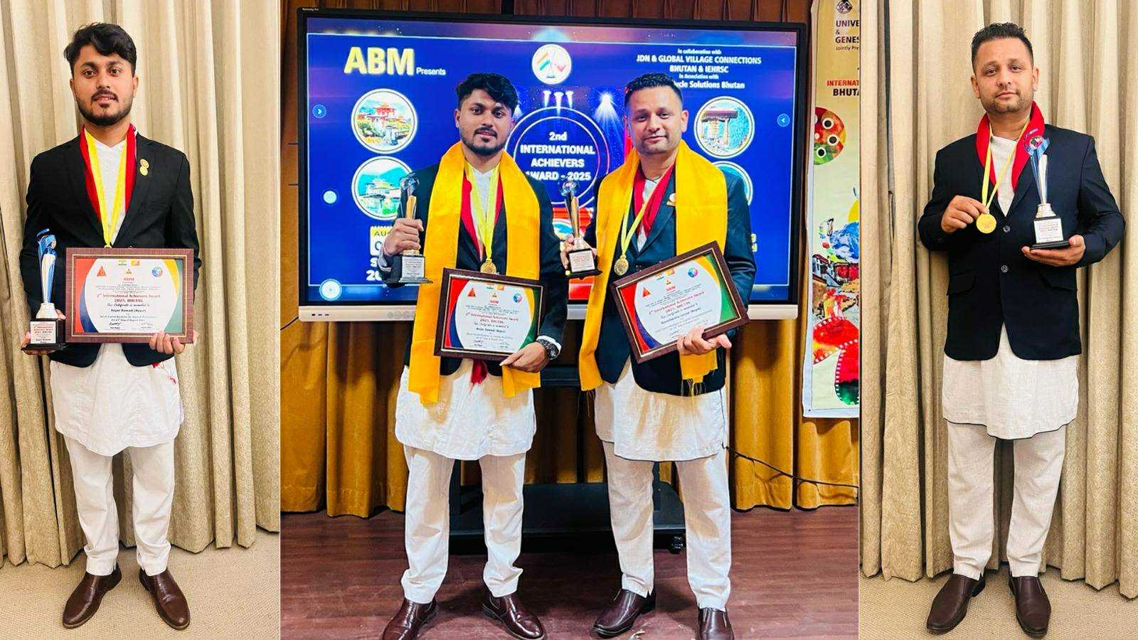 भुटान। भुटानको राजधानी थिम्पुस्थित नामसेलिङ बुटिक होटेलमा सम्पन्न २औं International Achievers Award 2025 Bhutan अन्तर्गत नेपालका २ जना युवा अभियन्ता अन्जन दवाडी र रामचन्द्र लम्सालले अन्तर्राष्ट्रिय सम्मान प्राप्त गरेका छन् । ‘Best Contribution in Social Activities’ श्रेणीमा अन्जन दवाडी सम्मानित...