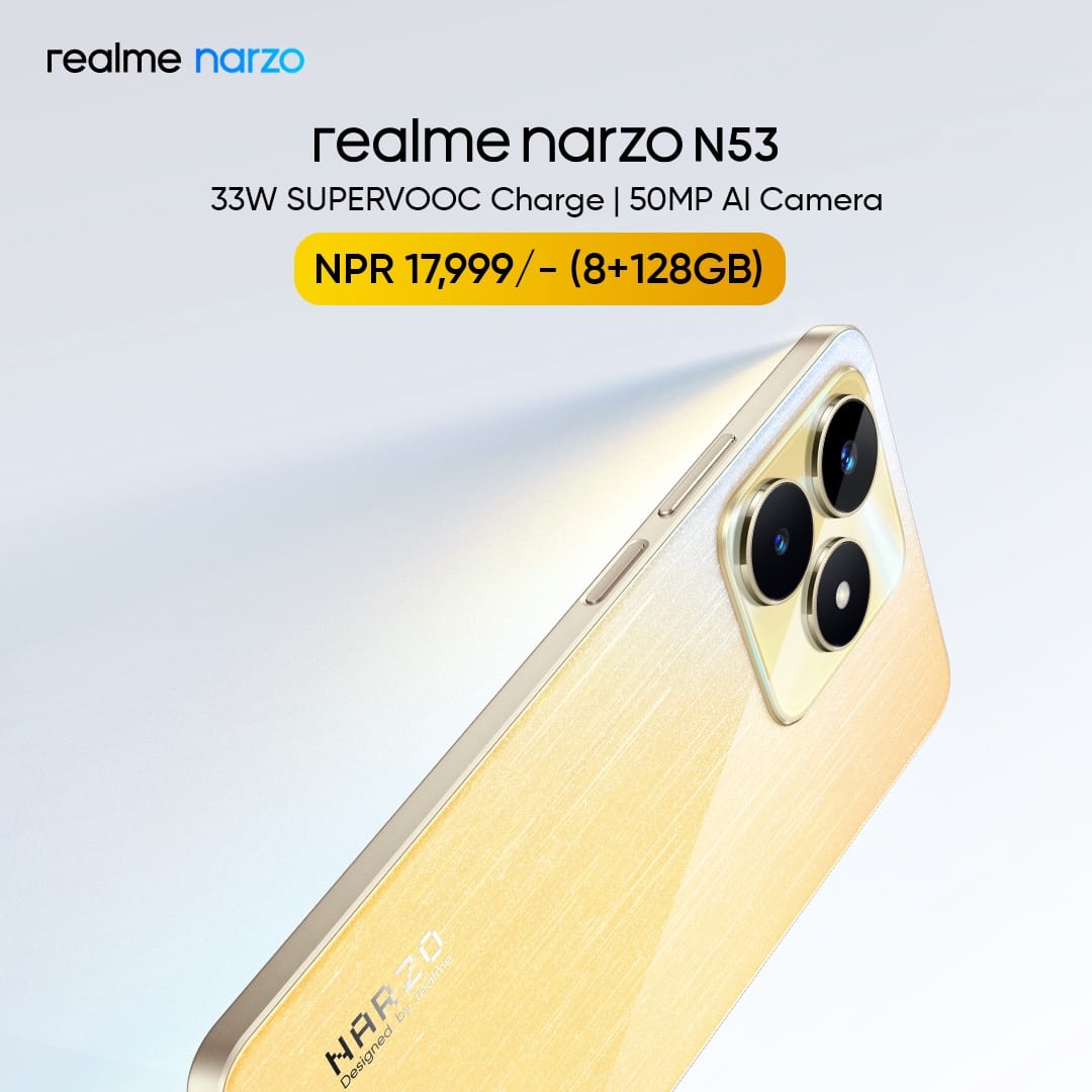 काठमाडौं। सर्वाधिक विश्वसनीय स्मार्टफोन ब्राण्ड रियलमीको रियलमी नार्जाे एन ५३, ८+१२८ जीबीको स्टोरेज भेरिएन्टमा बजारमा उपलब्ध भएको छ । आकर्षक मूल्य सहितको यस रियलमी नार्जाे एन ५३ को जम्मा मुल्य सत्र हजार नौ सय उनानसय रहेको कम्पनीले जनाएको छ। ५०...