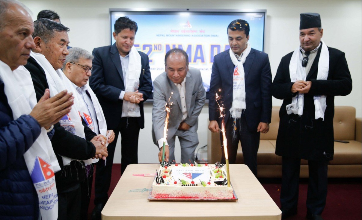 काठमाडौँ । नेपाल पर्वतारोहण संघ (एनएमए) को ५२औँ वार्षिकोत्सव आज नक्सालस्थित नागपोखरीमा रहेको एनएमए सचिवालयमा विविध कार्यक्रमसहित मनाइएको छ। कार्यक्रममा तीन जना पर्वतारोही र दुई जना पत्रकारलाई प्रतिष्ठित पुरस्कार प्रदान गरिएको थियो। पर्यटन विभागका नवनियुक्त महानिर्देशक रामकृष्ण लामिछाने प्रमुख अतिथि...