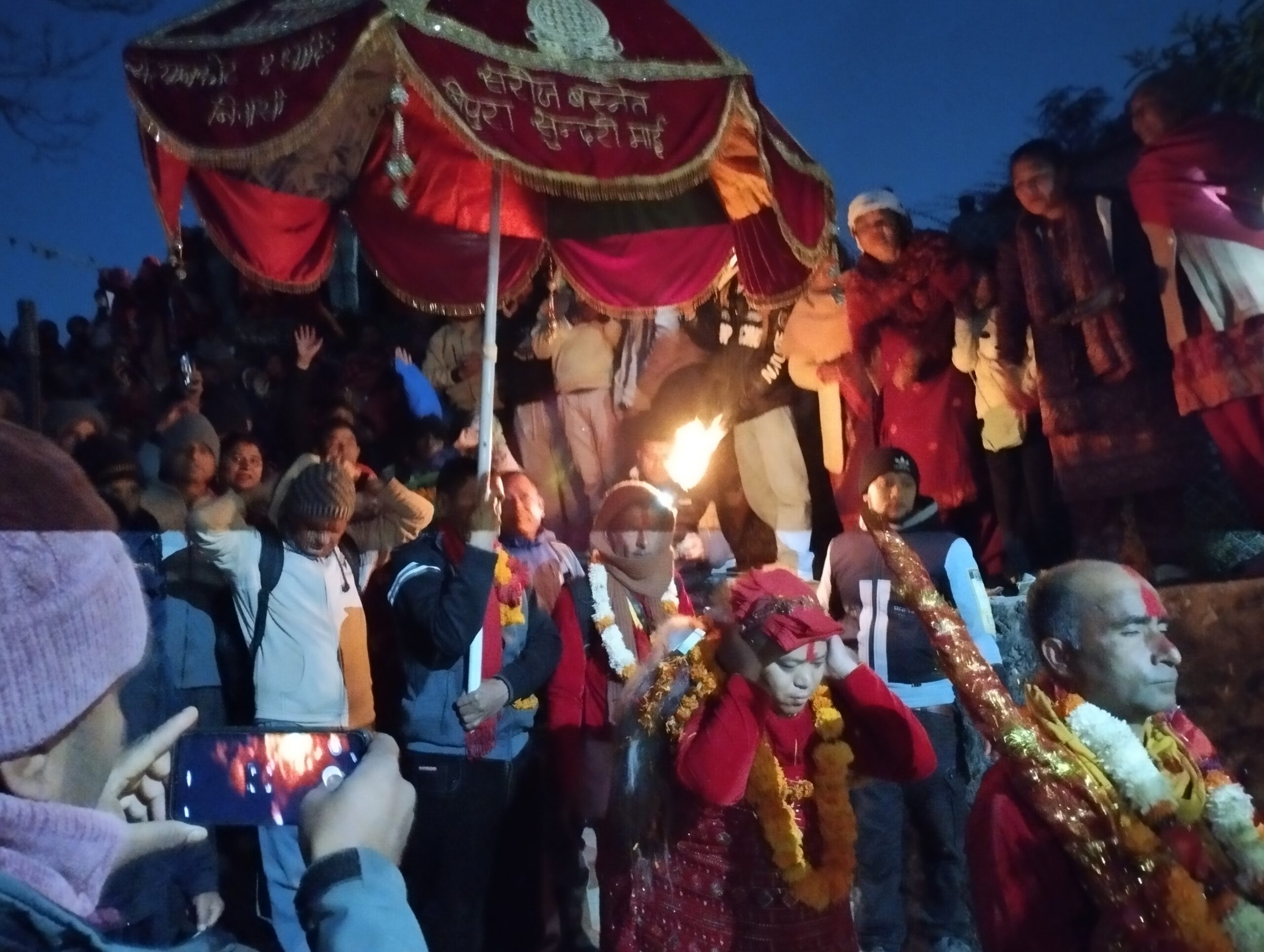 त्रिपुरासुन्दरीको उत्पत्ति हिन्दू ग्रन्थहरूमा वर्णित शक्तिपीठ कथासँग जोडिएको छ। किंवदन्ती अनुसार, सतीदेवीको कण्ड्याउलो पतन भएको स्थान ‘उद्यान’मा त्रिपुरासुन्दरी उत्पत्ति भएकी मानिन्छिन्। स्थानीय लोककथामा भनिएजस्तै, वर्तमान पुजारी परिवारका पुर्खालाई देवीले सपनामा आफू रहेको स्थान देखाइदिएपछि मात्र यो मन्दिरको स्थापना भएको हो।...